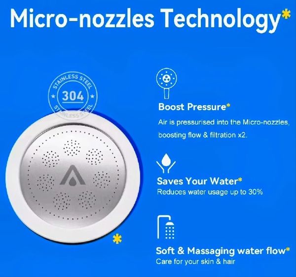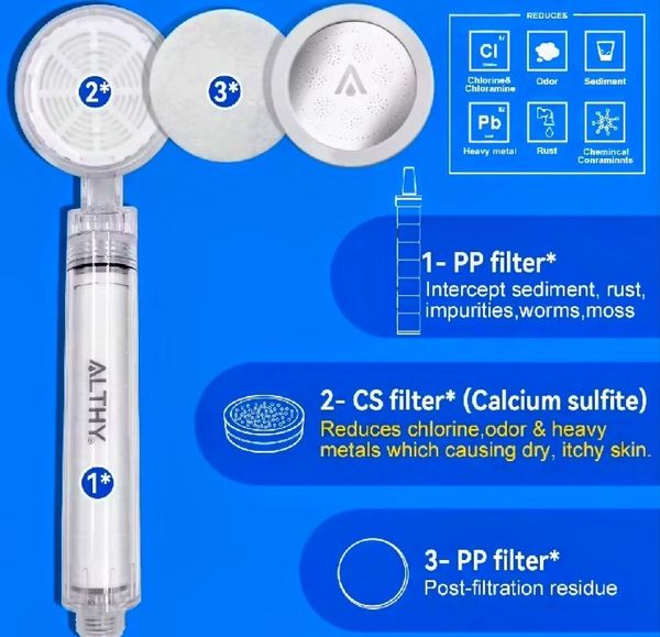 Triple Water Filtration: Reduces chlorine, rust, sediments, and impurities for cleaner, skin-friendly water.